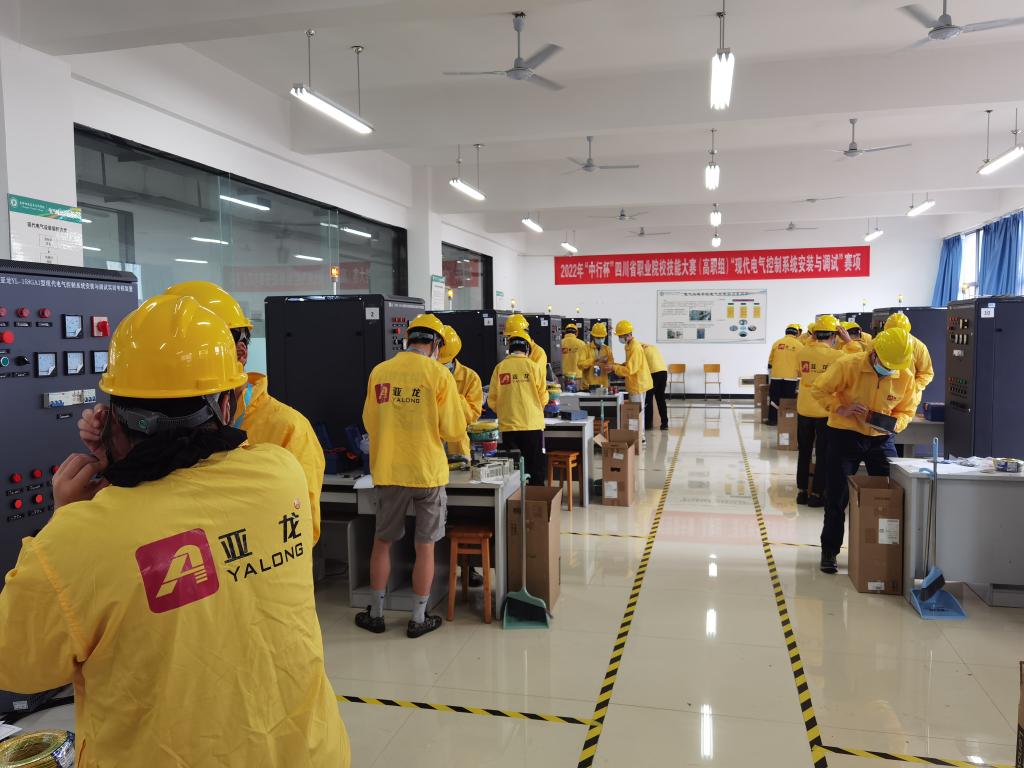 4月23至24日,由四川省教育厅主办、15vip太阳集团承办,亚龙智能装备集团股份有限公司协办的2022年“中行杯”四川省职业院校技能大赛(高职组)“现代电气控制系统安装与调试”赛项在公司成功举办。来自全省22所高职院校40支队伍,80名选手同台竞技,15vip太阳集团两支代表队经过努力拼搏,分别荣获省赛团体一等奖和二等奖。