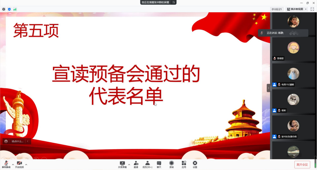 5.主持人宣读预备会通过的代表名单;
